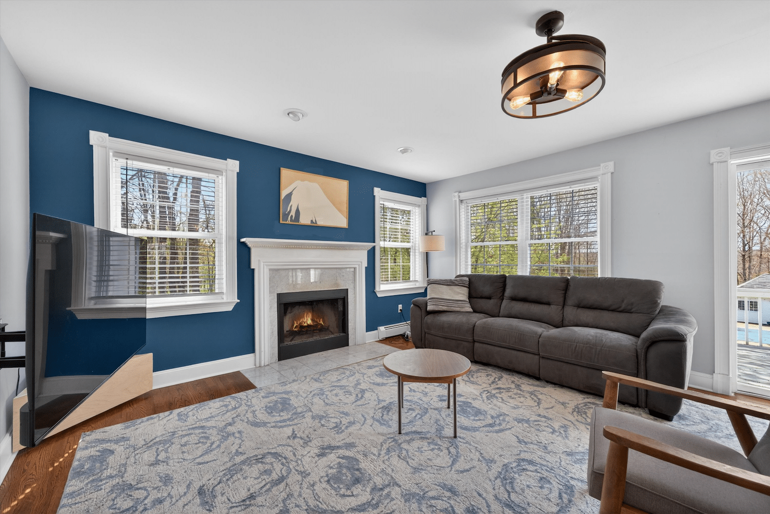 - Family room with wood-burning fireplace
